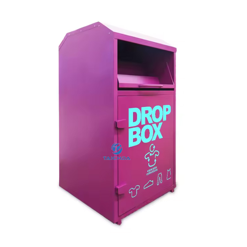 صندوق إعادة تدوير الملابس المستعملة ذو سعة كبيرة مصمم خصيصًا للاستخدام الخارجي، مصنوع من صفائح مجلفنة.