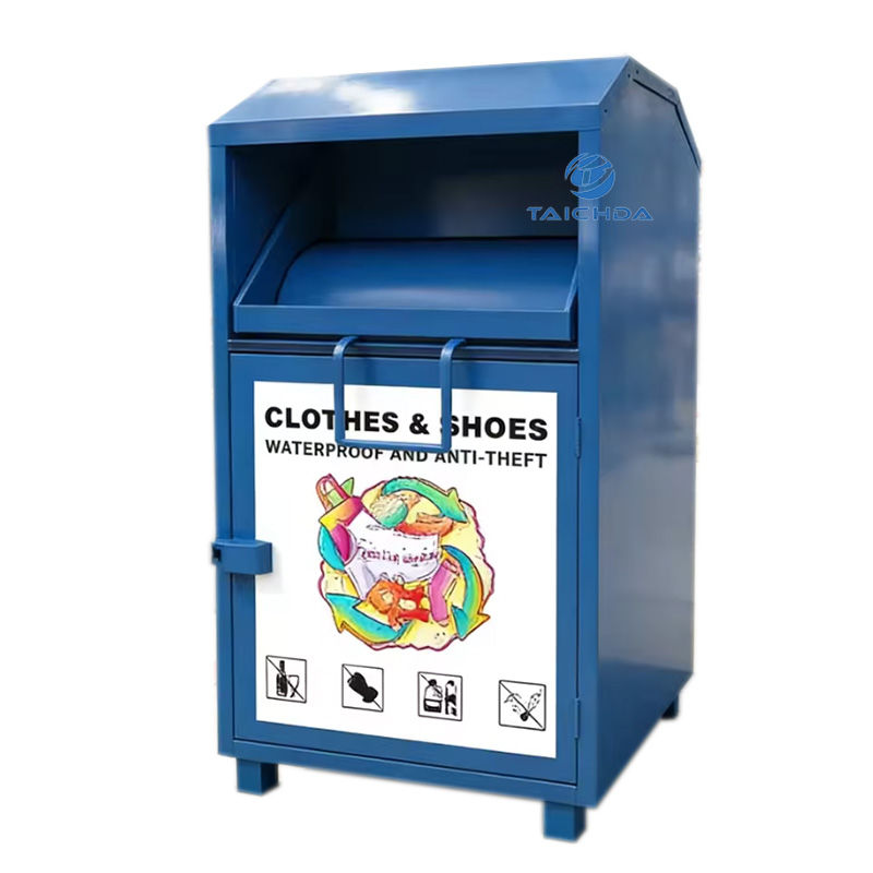 صندوق تجميع منسوجات مستدامة، مُصمم خصيصًا من قبل الشركة المصنعة، مقاوم للصدأ، لإعادة تدوير الملابس. صندوق تجميع منسوجات مستدامة