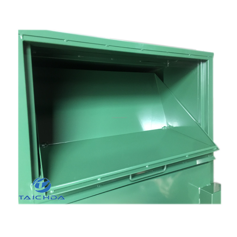 صندوق تجميع أقمشة لإعادة تدوير الملابس المستعملة المصنوعة من الفولاذ الأخضر بالجملة